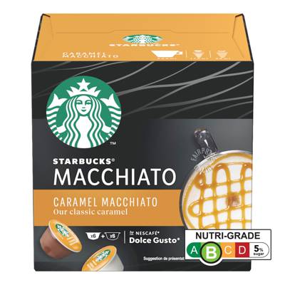 The classic caramel taste.The box contains 6 capsules of Starbucks by Nescafe Dolce Gusto® Caramel Macchiato Coffee, with 6 milk capsules, designed for Nescafe Dolce Gusto® coffee machines. Create professional-quality coffees with a thick velvety cream, thanks to the machine’s high pressure. With our hermetically sealed capsules, which preserve coffee freshness, you’ll enjoy rich aromatic cups every time.