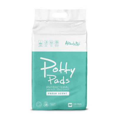 Altimate Pet Potty Pads are 100% leakproof, highly absorbent pads infused with fresh scent for enhanced odor control. Made with Leak Proof Multilayer technology, these heavy duty pads are built to withstand overflow. The fast-drying top layer also prevents tracking, so you dont have to worry about your pup stepping into his mess. Whether you are using them for puppy training or to assist aging dogs, these pads are a great way to keep your floors clean and provide your furry friend with relief. Training Instructions: 1. Place the potty pad with the quilted side up in a designated area ( pee tray / floor ) so that your pet will be able to start using. 2. Try to encourage your pet to go to the potty pad on a regular basis. When it is time, walk your pet over to the pad and use whatever command that feels natural (i.e. ""Go potty!"", ""Do the business!""). 3.When your pet successfully uses the pad, it is vital to reward your pet with positive reinforcement and even small rewards. B