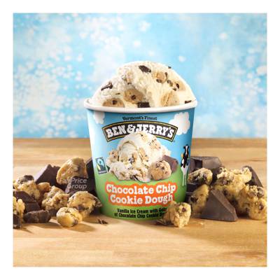 We knew we were onto something big when we made the world's first batch of Chocolate Chip Cookie Dough ice cream in 1984. Today the flavour still reigns among our all-time most popular concoctions. We strive to make the best possible ice cream in the best possible way. We source Fairtrade sugar, cocoa and vanilla, cookie dough from a Vermont family-owned business, eggs from cage-free hens and milk and cream from happy cows. Learn more at benjerry.com.