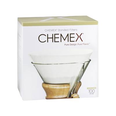 CHEMEX Coffeemakers used together with the scientifically designed, patented CHEMEX Bonded Filters, will guarantee that our pourover brewing process will deliver the perfect cup of coffee, without any sediments or bitter elements. What makes CHEMEX Bonded Filters the real deal? - Cone-shape ensures uniform extraction for pure coffee flavor - Thicker (20-30% more than the competition) specialty fiber filter design keep bitter elements, oils, and grounds in their place (and out of your cup) - Prefolded for convenience - Will fit most other cone-shaped filter coffeemakers - Fits all CHEMEX Coffeemakers except CM-1, CM-1C, CM-