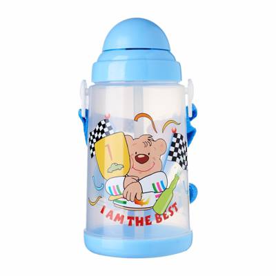 The plastic water bottle is made of Polypropylene (PP) and thus BPA free and safe. It has a flip-open cover concealing the straw inside designed for easy drinking. Temperature resistant: 90 to -20C. Diameter9 H19cm.