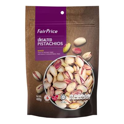 FairPrice Unsalted Pistachios are sourced from the best origins and carefully selected to bring you a wholesome snacking experience. Perfect on its own or as an addition to a favourite baking recipe, it is high in dietary fibre and naturally cholesterol free, making it the ideal choice for you and your family