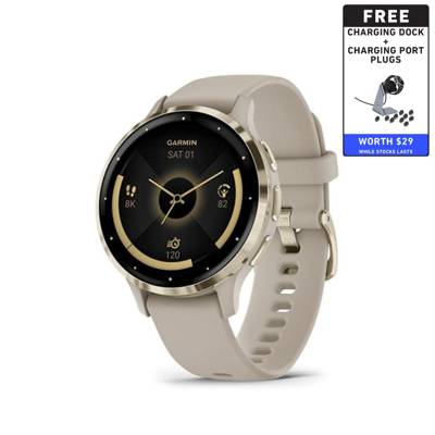 - • Garmin Venu 3S Smartwatch, Cream Gold Stainless Steel Bezel with French Gray Case