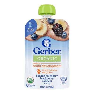 Gerber Organic Pouch Puree - Banana Blueberry Blackberry Oatmeal