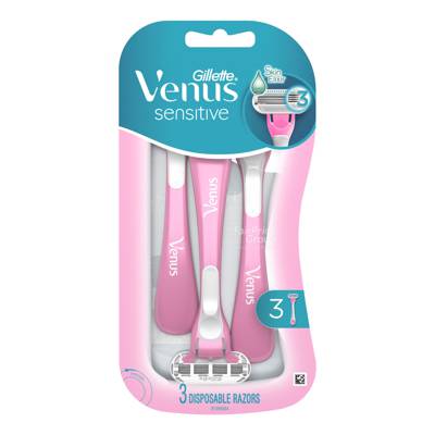 Gillette Venus Smooth Sensitive Disposable Razor is a 3 bladed razor designed for women with sensitive skin. The razor has extra lubricant and 3 body-hugging blades for a smooth shave with no irritation