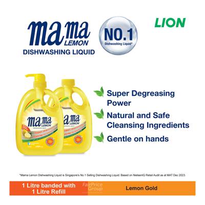 Mama Lemon Gold Dishwashing Liquid & Refill - Natural Lemon