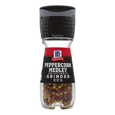 Black Peppercorns, Coriander, Pink Peppercorns (Schinus Terebinthifolius), White Peppercorns, Allspice and Green Peppercorns