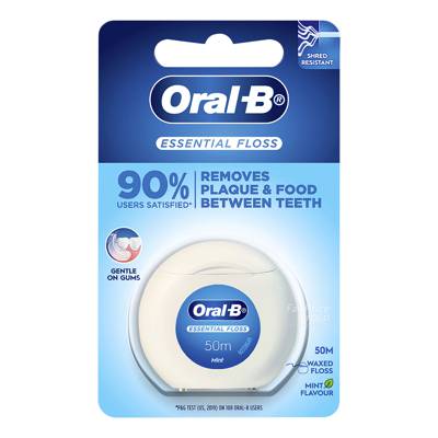 Oral-B Essential Floss Mint Waxed Dental Floss cleans where brushing alone can't reach, and in hard to reach places where plaque builds up. The specially bonded filament that are waxed makes it easy for sliding between teeth. It helps clean the tough to get plaque away to keep your gums and teeth healthy. Lastly, it also have shred-and fray resistant fibres to make the process comfortable and safe.