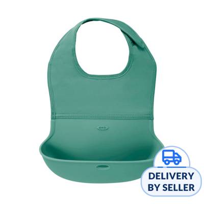 - The handy OXO Tot Roll Up Bib makes mealtime messes more manageable. Shaped for comfort, it provides ample coverage to protect babys clothes and features a food-safe pocket wide enough to catch stray pieces of food that miss babys mouth.