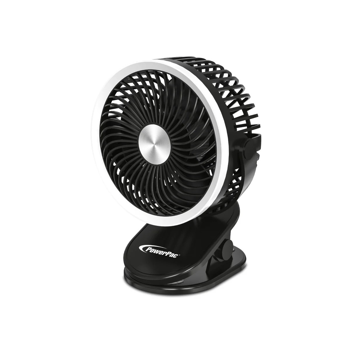- - Click-on fan with base, conveniently converts from a clip fan to a table fan