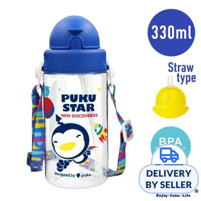 Puku Puku Friends Tritan Straw Bottle Blue