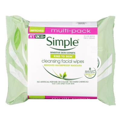 - - Simple Kind to Skin Cleansing Facial Wipes gently lifts away dirt and impurities, even waterproof mascara, whilst hydrating your skin. Our facial wipes are convenient, quick-to-use, and make the perfect addition to any make-up bag, gym kit or bathroom.