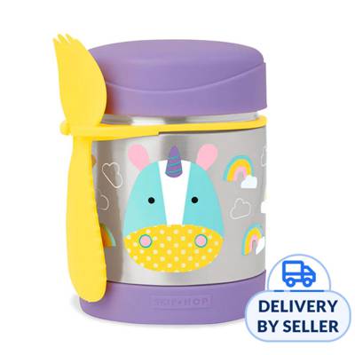 - This colorful stainless steel container keeps kid-sized portions warm or cold. Store the spork, or most utensils, in the handy built-in holder so your little one is ready for meals on-the-go.