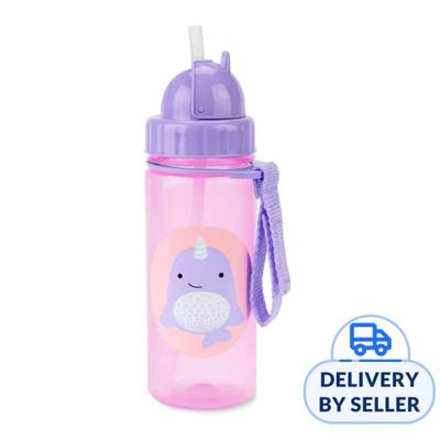 - Featuring cute animal faces, this kid-sized bottle is perfect for water, juice or whatever your little one likes to sip. Easy for little hands to grab & go, it has a flexible straw, flip lid and a handy grab-strap that attaches to anything.