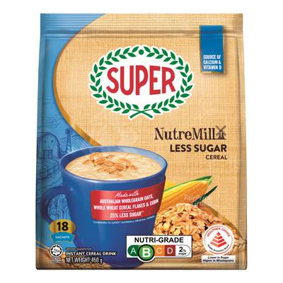 A SUPER cup of NutreMill cereal drink is wholesome, aromatic and simply satisfying! Deliciously made with wholegrain Australian oats, whole wheat cereal flakes and corn – Nutremill is also high in calcium and vitamin D. SUPER NUTREMILL Less Sugar is a healthier option with 25% less sugar (compared to SUPER NutreMill Original Cereal) with all the same crispy and creamy deliciousness.