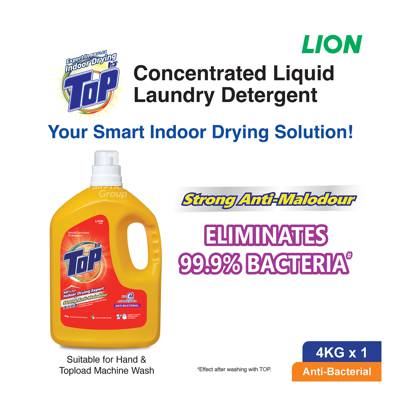Eliminates 99.9% of bacteria and colour protect - prevents colour fading and keep colours bright. Be it rain or shine, your clothes smells great even when dried indoors as Top rids odor-causing bacteria during washing cycle. Outpower stains and odours as the advanced Japanese formula easily removes tough stains and perspiration odors. No more overnight soaking with TOP’s powerful cleaning performance. This product is also suitable for hand wash and top load machines.