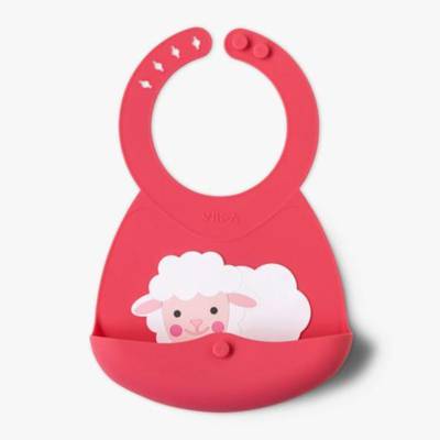 Viida Joy Zoo Series Portable Silicone Bib - Hot Pink Sheep